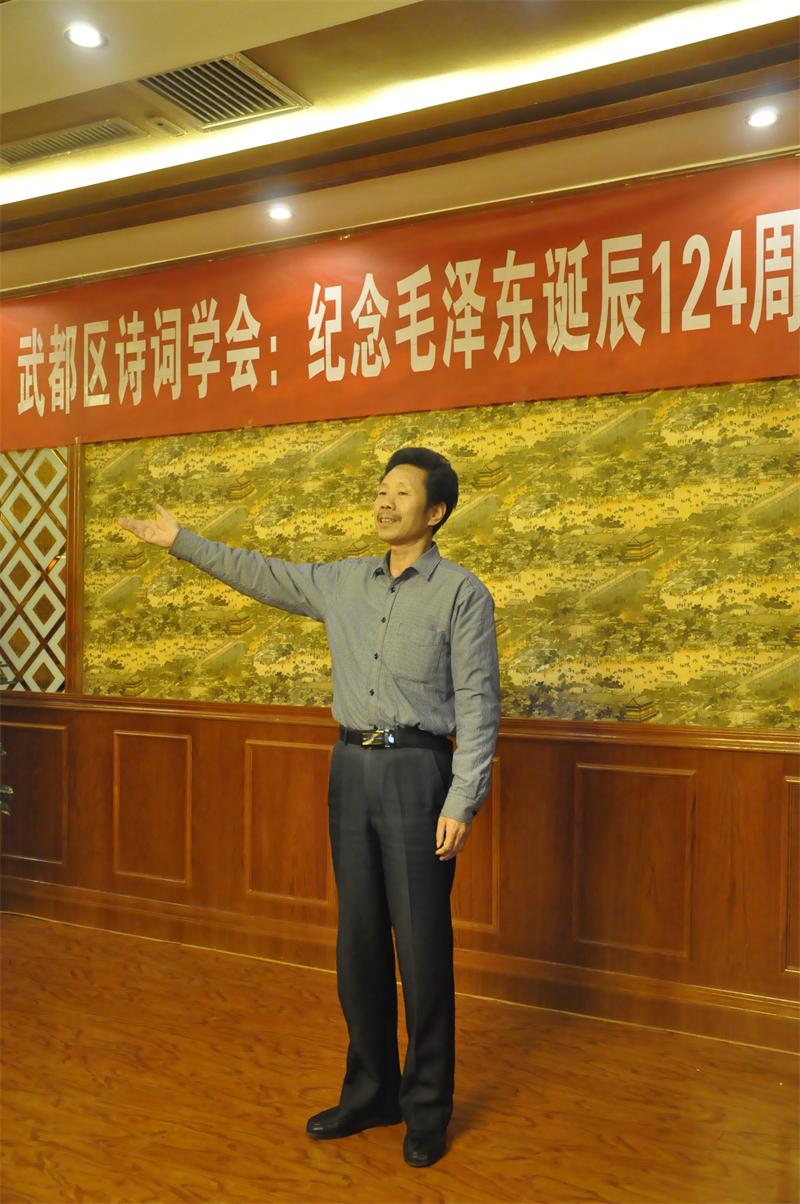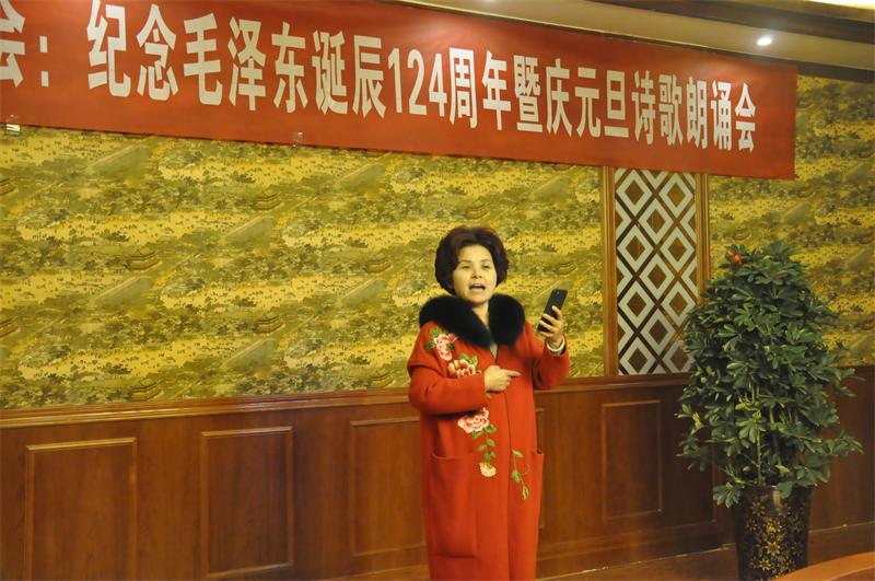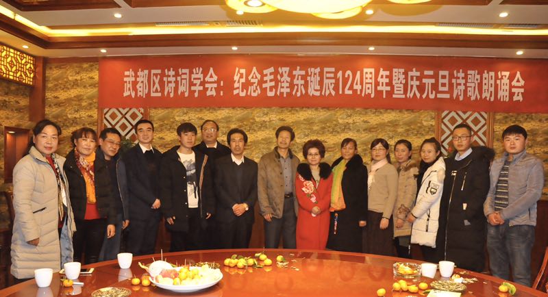 “庆元旦、及纪念毛泽东诞辰124周年诗歌朗诵会”在陇南市武都区东江新区阶州大道泰和生态茶楼举行,武都区宣传部周立钧部长以及武都区部分诗友参加朗诵活动。